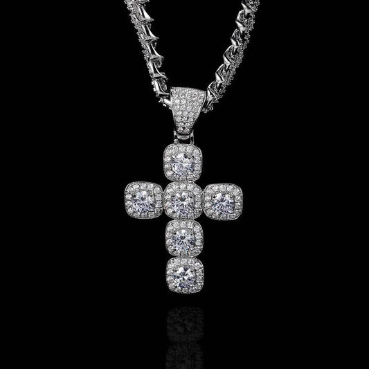 Princess Cross Clustered Tennis Pendant White Gold (With chain)